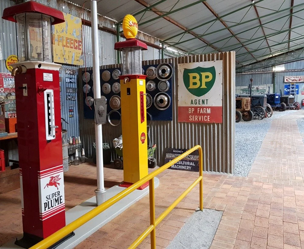 Vern’s Shed, named for Vern Witney, an original contributor & volunteer, exhibits a large selection of tractors, crawlers, army exhibits from WW2 & Vietnam, signage, number plates, trapping gear, scythes, agricultural tools and service station collectables. A shearing shed display is currently under construction. Some of “Vern’s Shed’s” machinery exhibits, many of which display full machine descriptions and history, are listed below. Underlined ones are linked to more info.